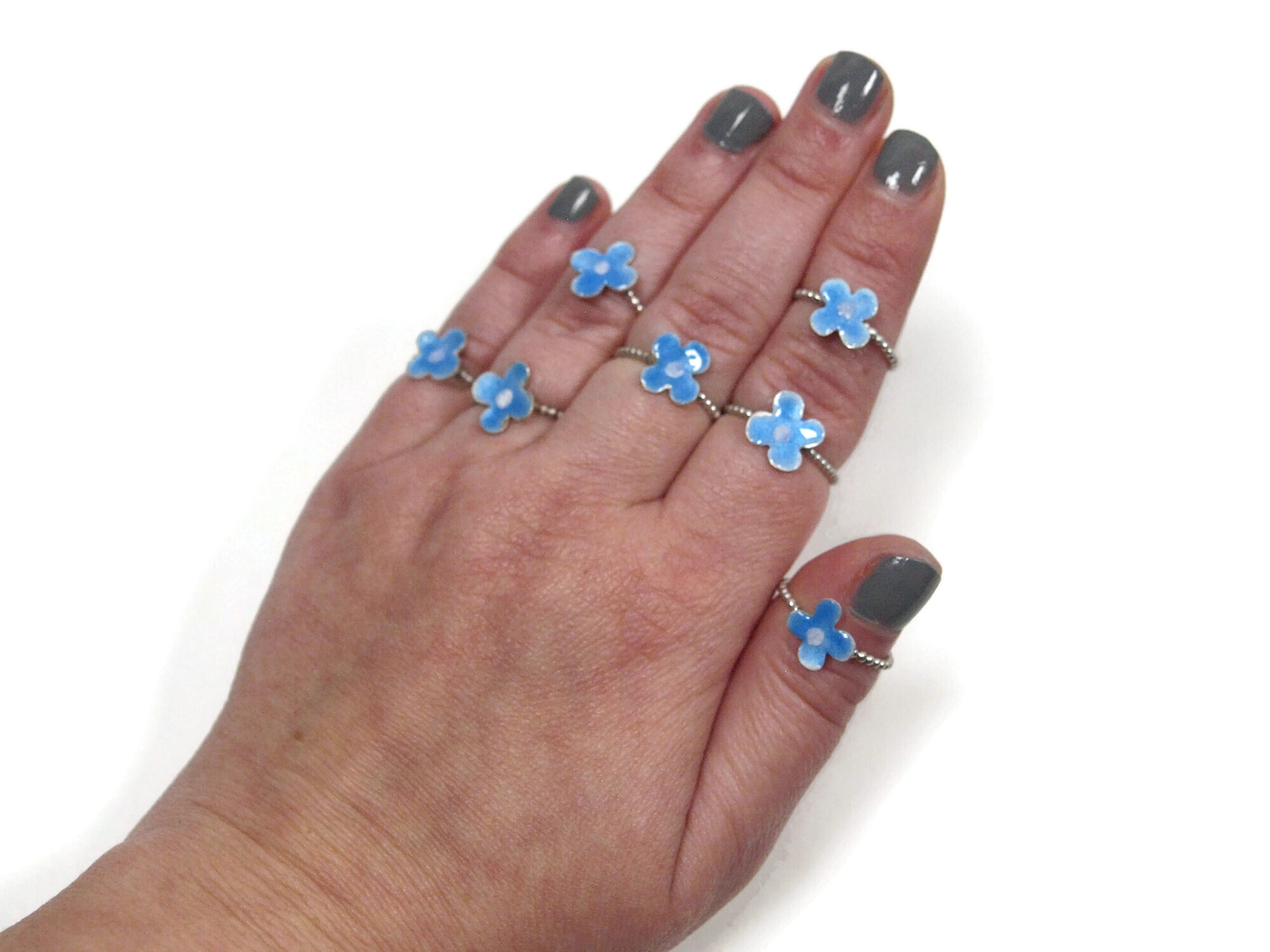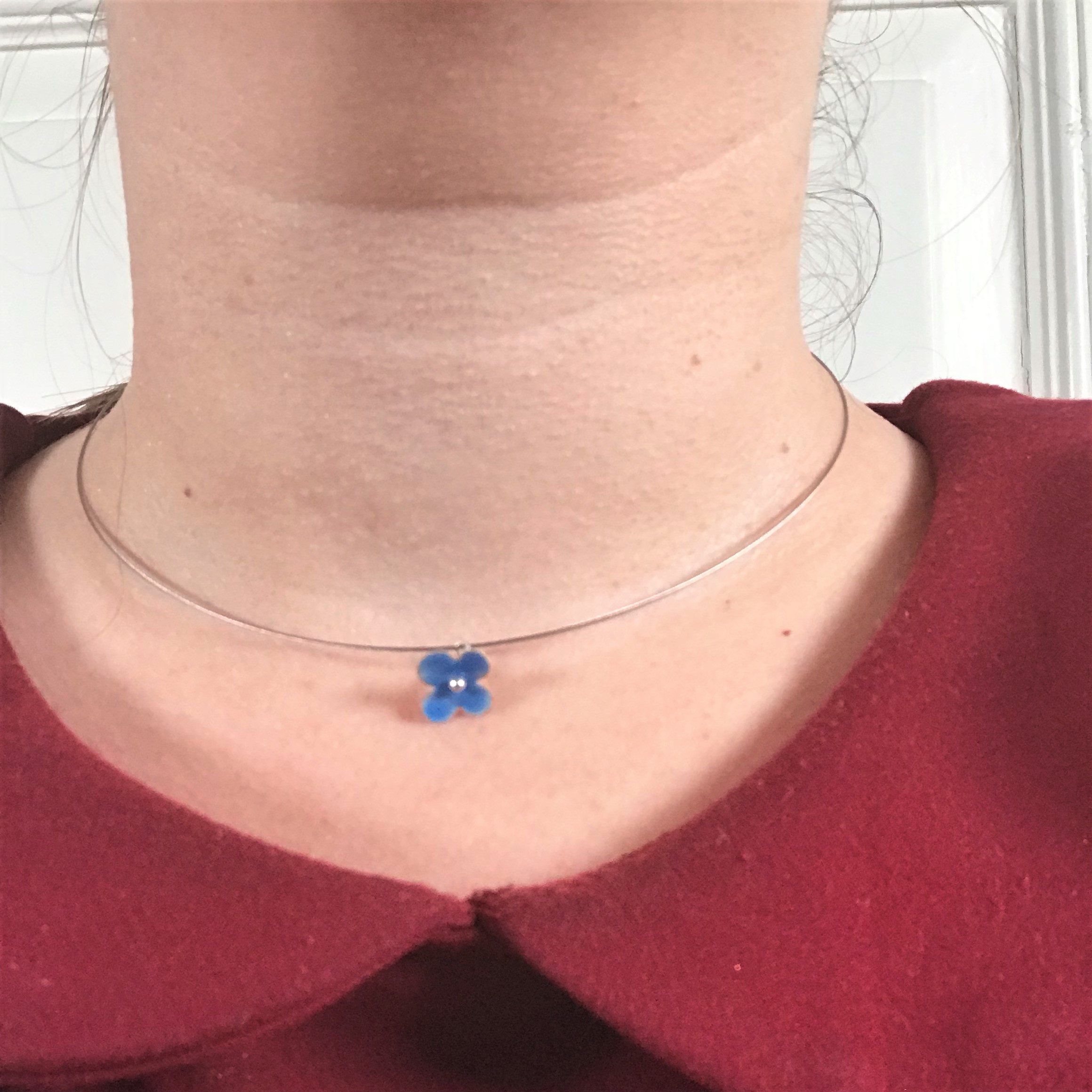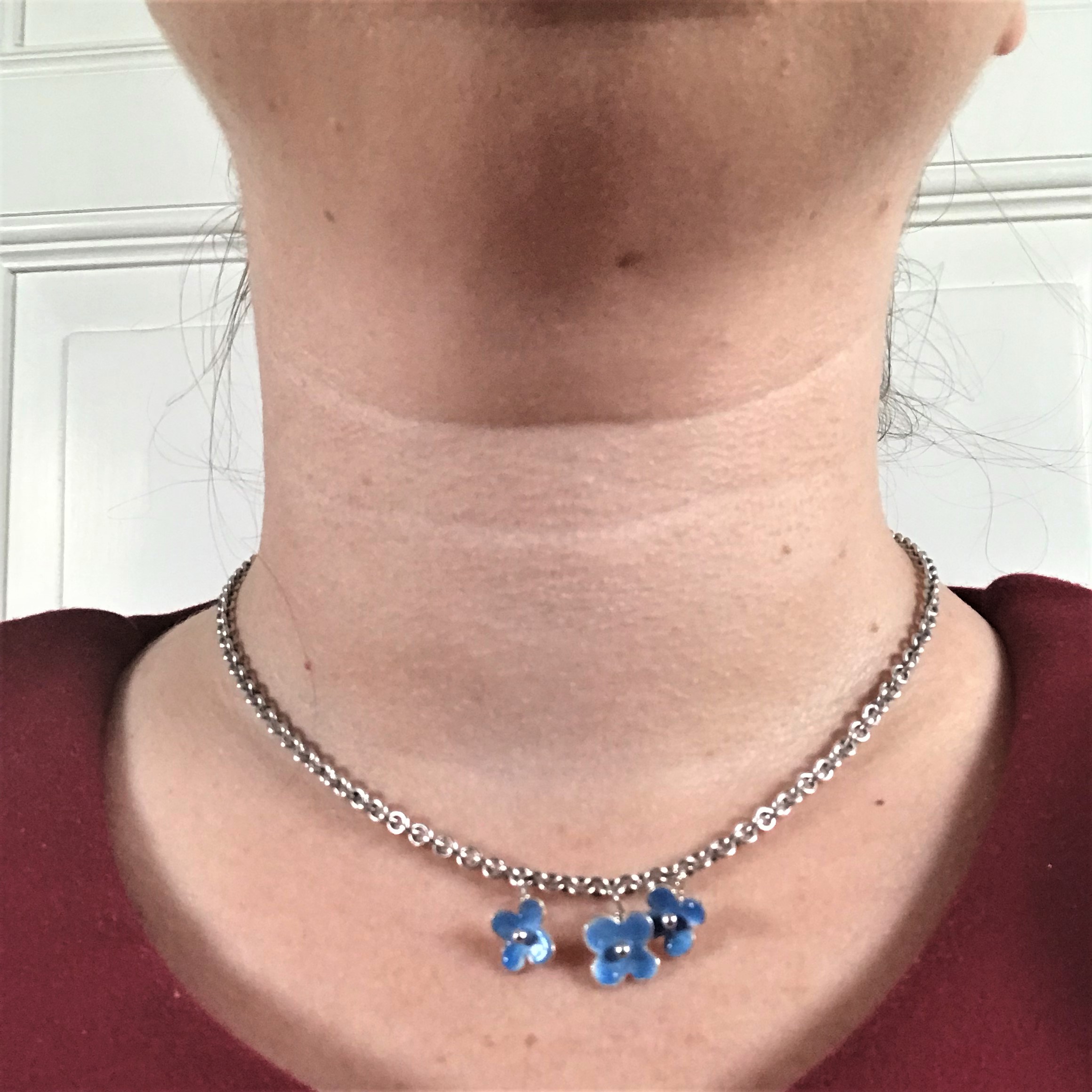 Filigraner Halsreif, aus Sterlingsilber, mit hellblau emaillierten Blüten ,Schmuckkollektion, Fröhliche Blümchen