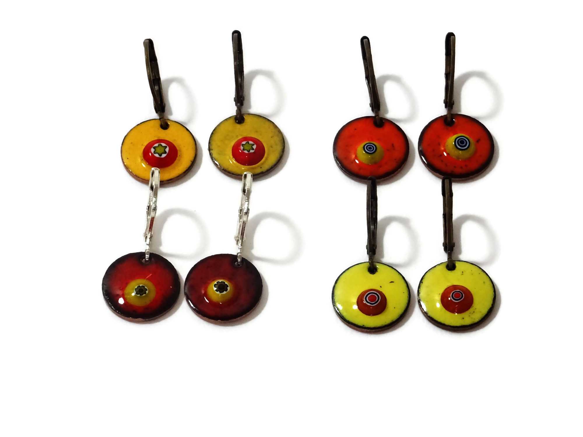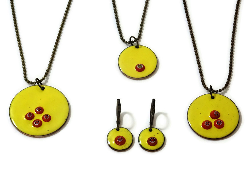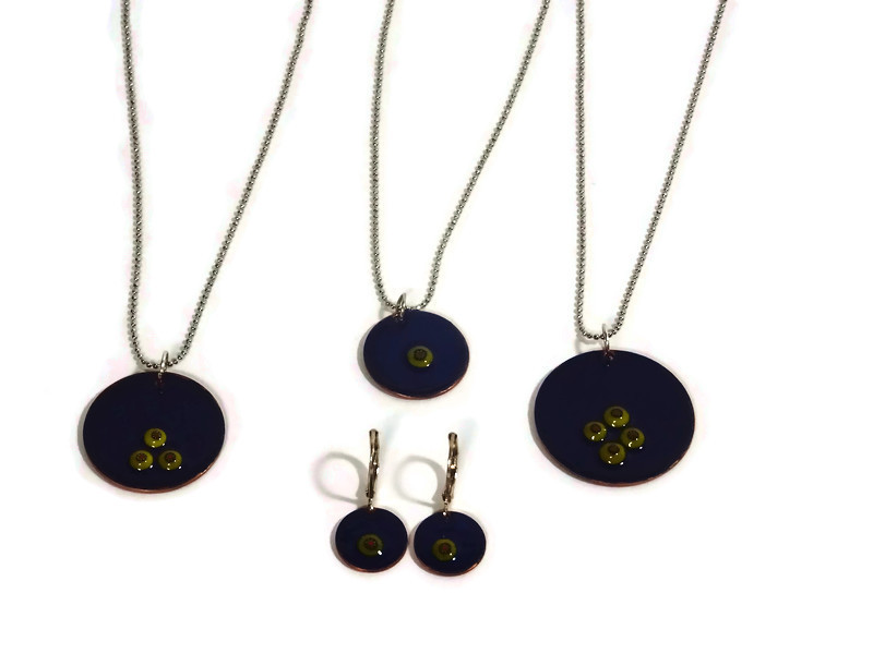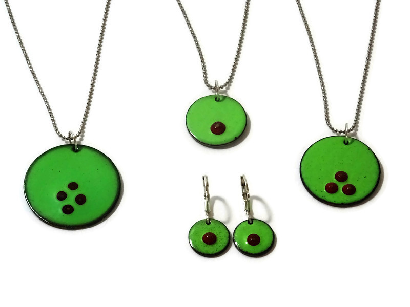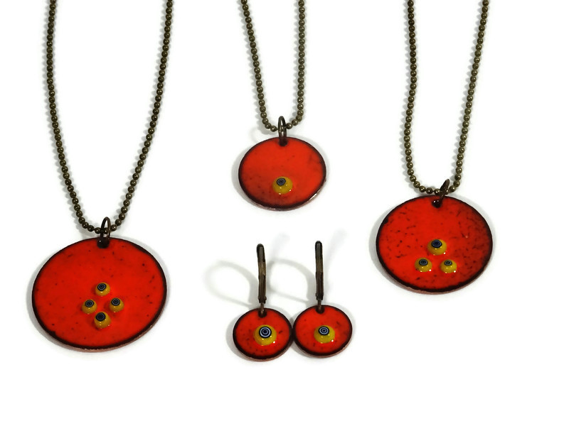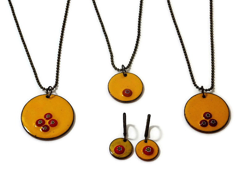Bunte Emaille Ketten mit winzigen Millefiori Motiven. Die Ketten habe ich in verschiedenen Farben vorrätig. Zudem gibt es die Kettenanhänger in 3 verschiedenen Größen. Als Ergänzung gibt es farbliche passende Ohrringe zu den Emaille Ketten.