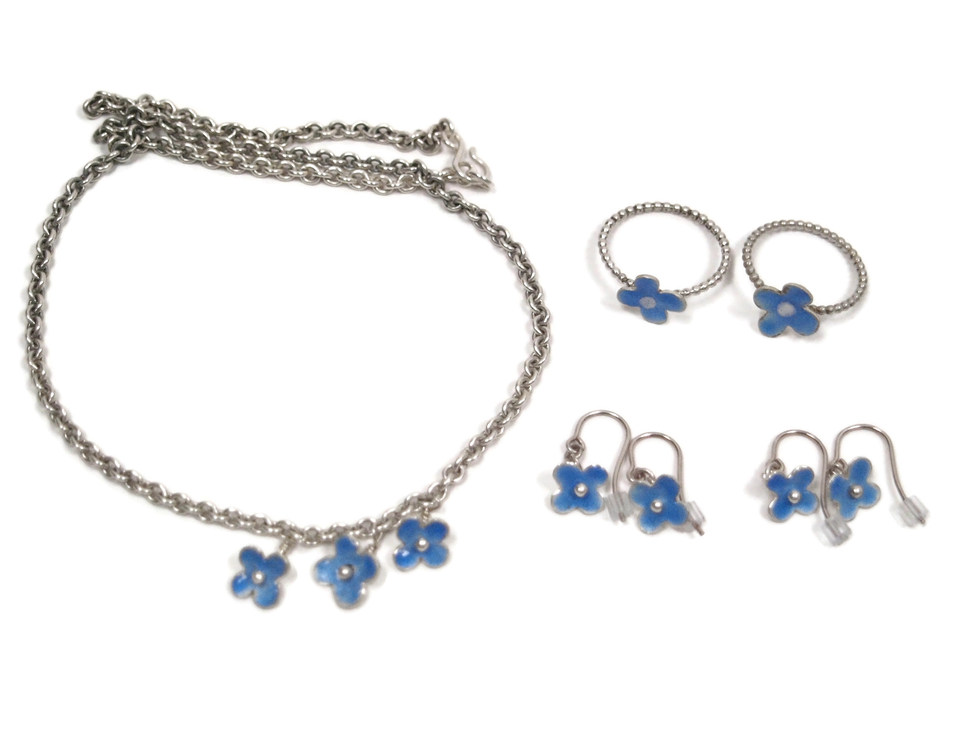 Kette, Ringe, Ohrringe aus Silber und Emaille