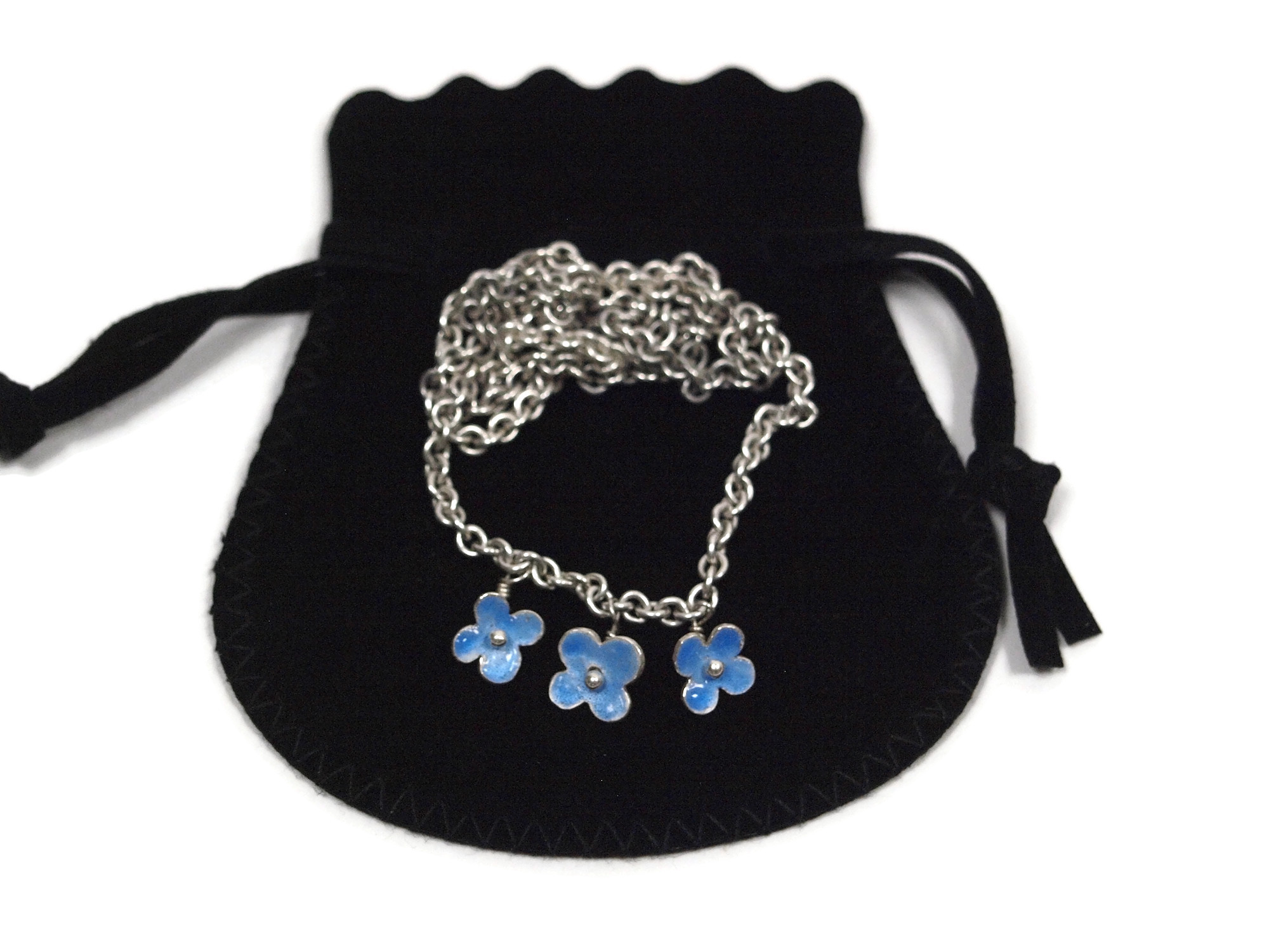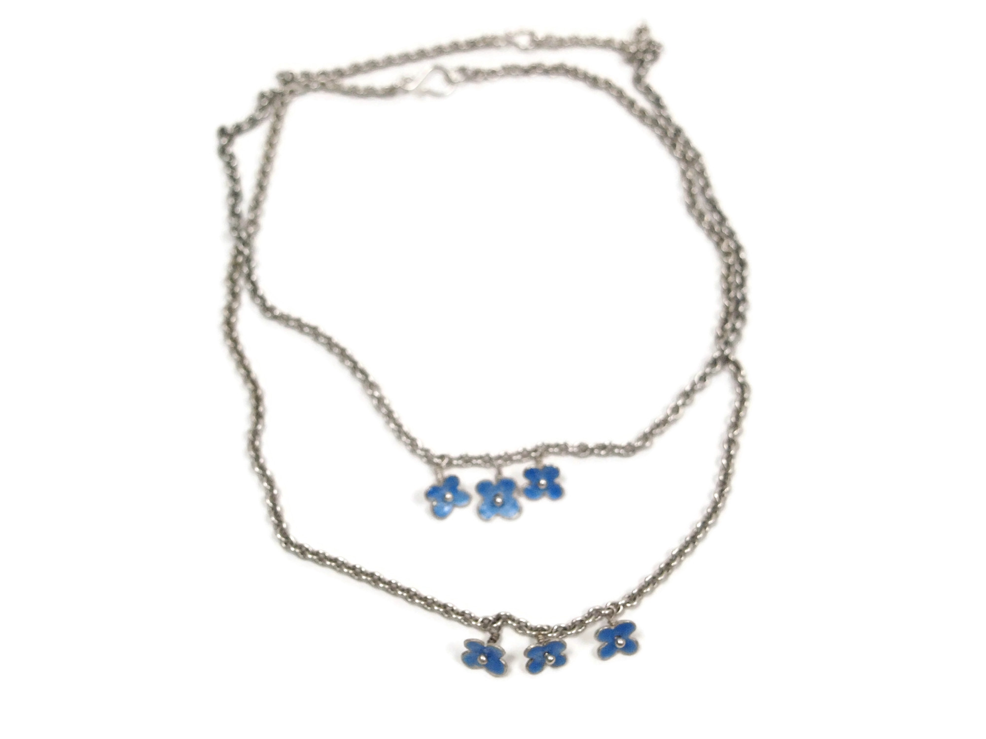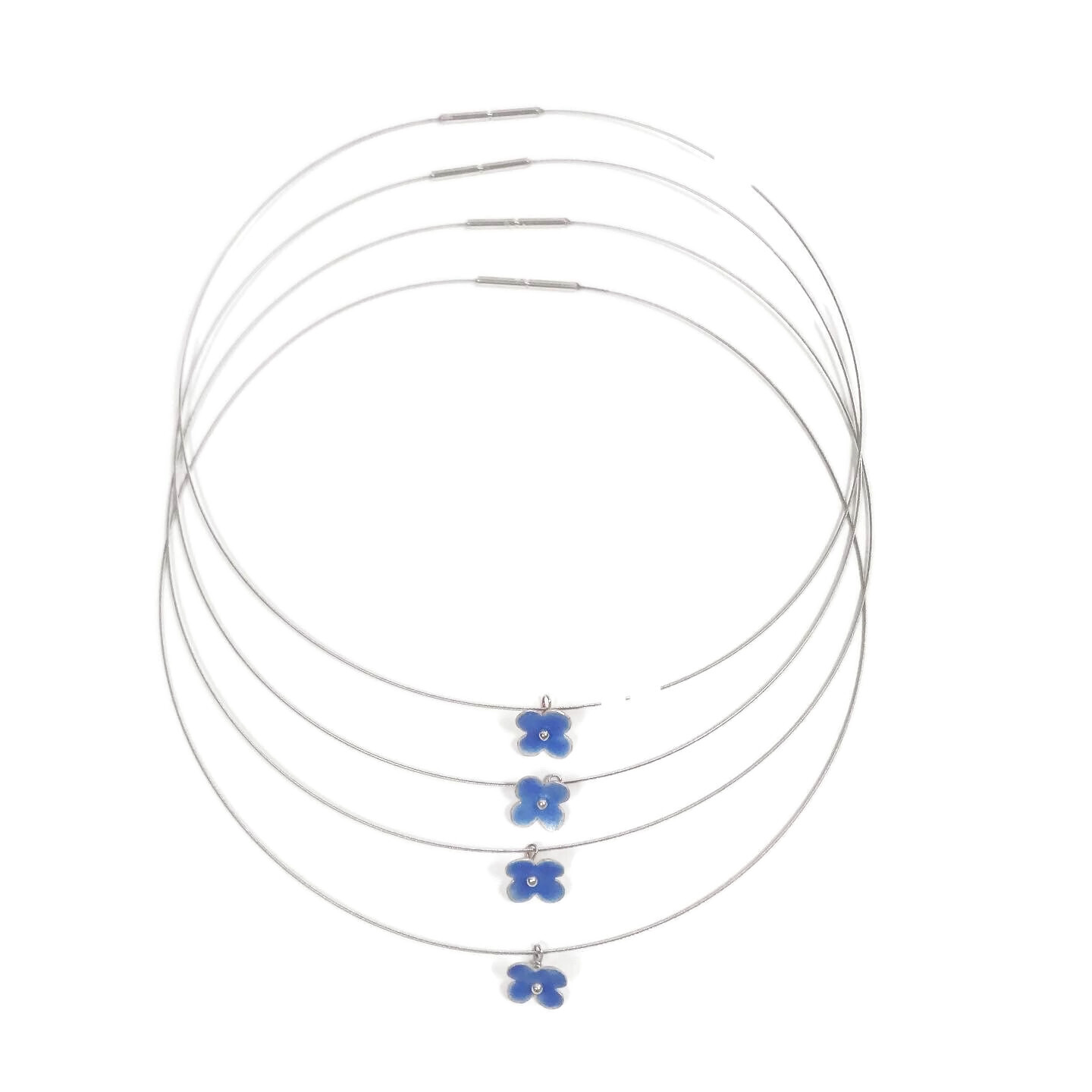 Filigraner Halsreif, aus Sterlingsilber, mit hellblau emaillierten Blüten ,Schmuckkollektion, Fröhliche Blümchen