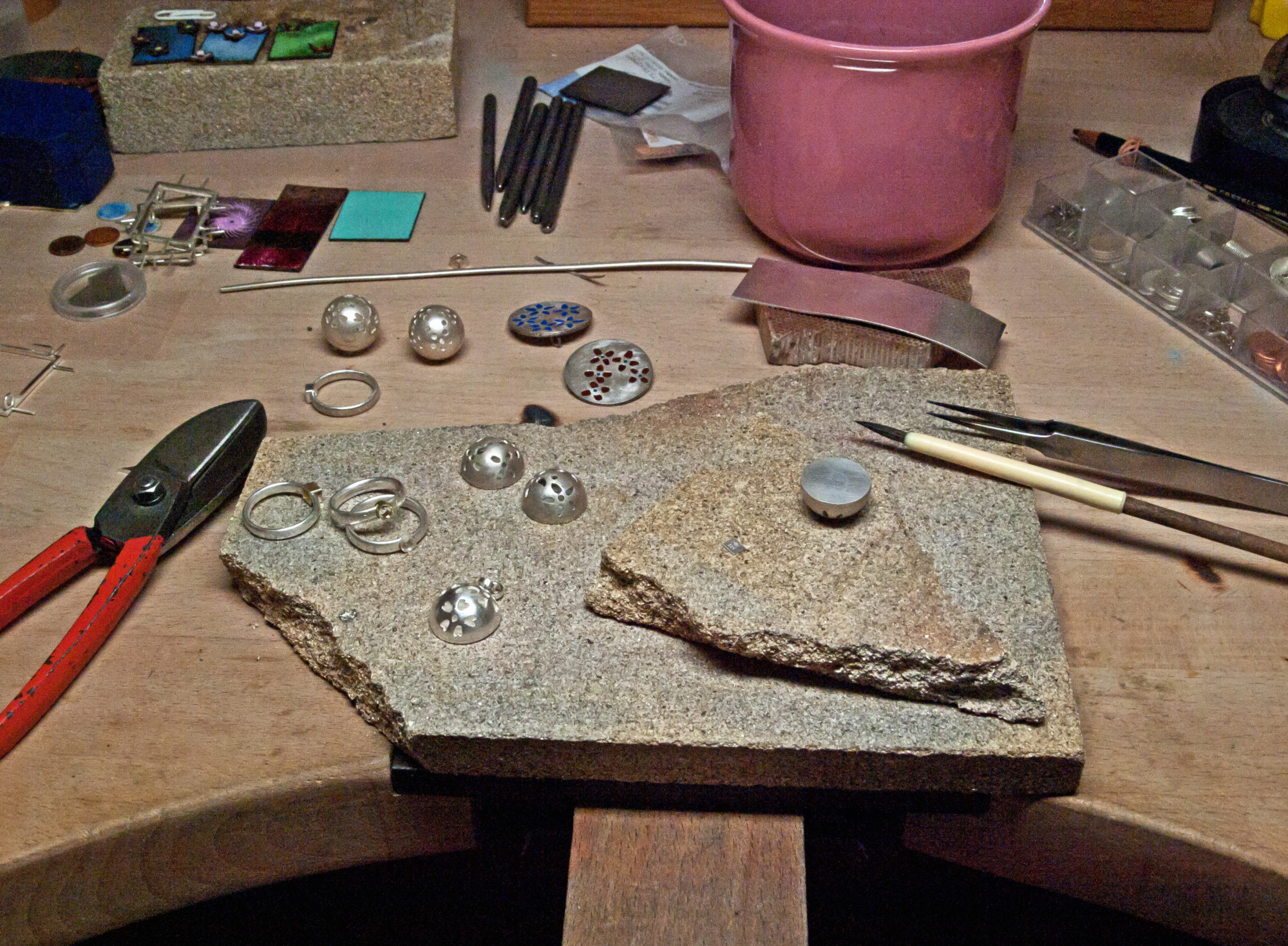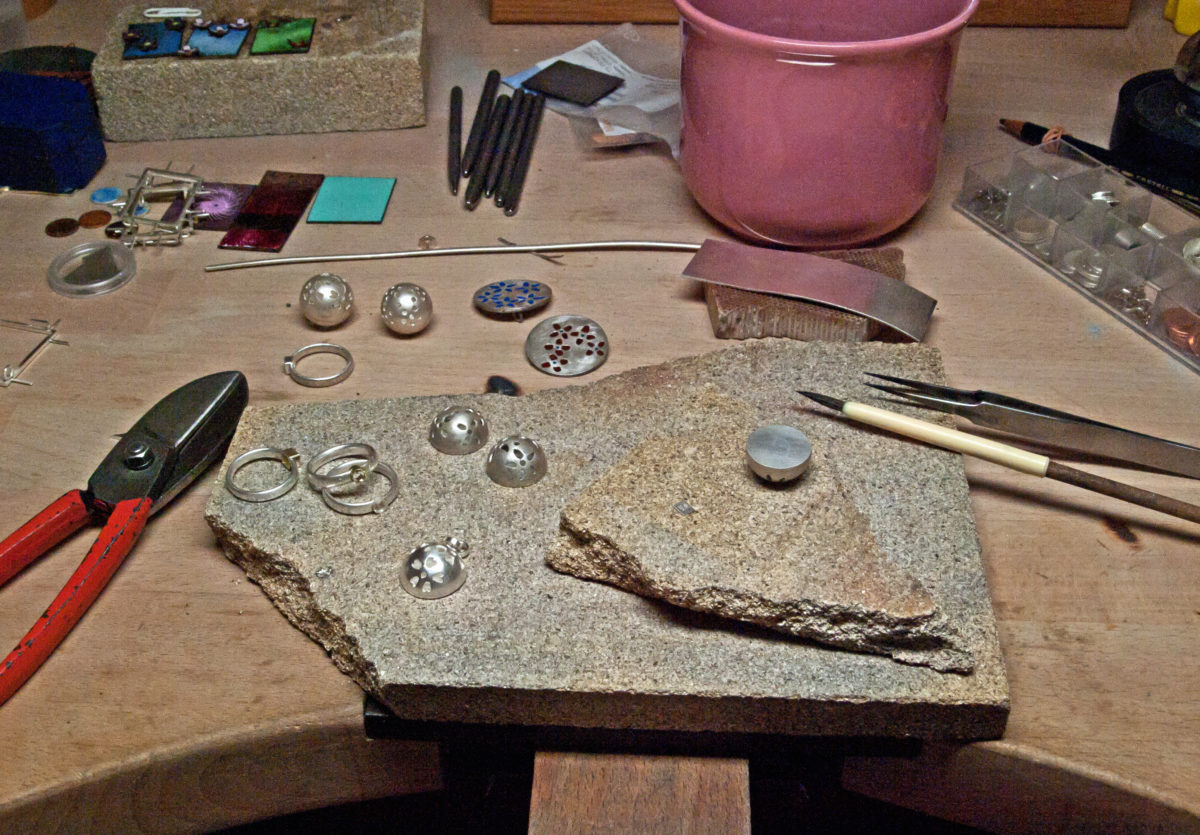 Werkstatt Impressionen: Schaue mir zu, wie ich meine Schmuckstücke herstelle. Von den Goldschmiedearbeiten über den Emailleprozess und den verwendeten Werkzeugen und Maschinen. Hier gebe ich dir Einblick, wie meine Schmuckstücke entstehen, welche Arbeitsschritte für die Herstellung benötig werden und das fertige Schmuckstück.