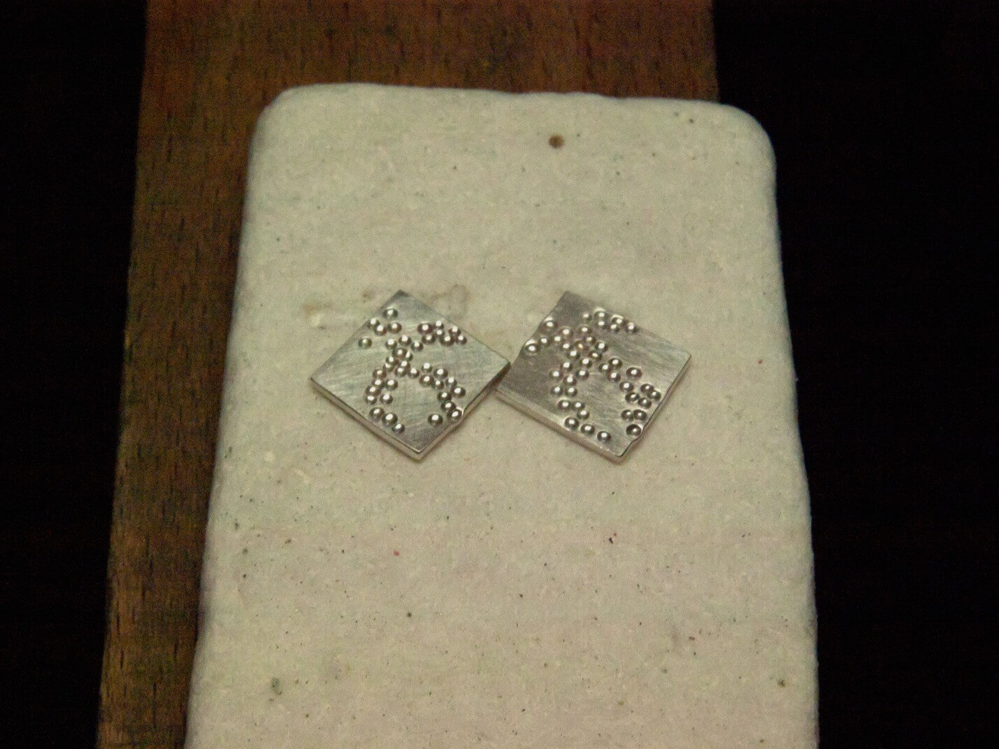 Die fertigen Ohrstecker sind bereit zum Emaillieren.